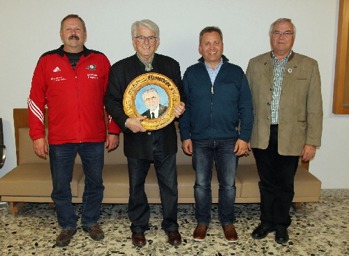 Die von Josef Niedermeier gestifteten Sonderpreise gingen anJosef Obermaier (Lengdorf) mit einem 84-Teiler, Heidi Osendorfer (20,2-Teiler) und Thomas Liedl (17-Teiler).Georg Schatz (r.) gratuliert den Siegern vom Ältestenschießen.V.l.: Alois Obermaier, Josef Niedermeier und Johann Huber.Text und Foto: Peter Stadler