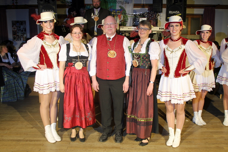 Die Buchbacher Gardemädchen überreichten Orden an (v.l.) Heidi Holme, Josef Pfanzelt und Karin Waxenberger.
