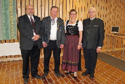 Oberdorfen (sta) - Eine angenehme Pflichtaufgabe war es für den 4. Bezirksschützenmeister Johannes Enders und Gauschützenmeister Georg Schatz langjährige und verdiente Schützen zu ehren. Sie zeichneten während der Jahreshauptversammlung aktive Vereinsmitglieder, Vereinsfunktionäre und Mitarbeiter der Gauvorstandschaft aus bedankten sich dabei um ihren Einsatz um das Schützenwesen und die Pflege von Tradition und Brauchtum. Der Gratulation angeschlossen haben sich auch der stellvertretende Landrat Jakob Schwimmer und Bürgermeister Heinz Grundner.