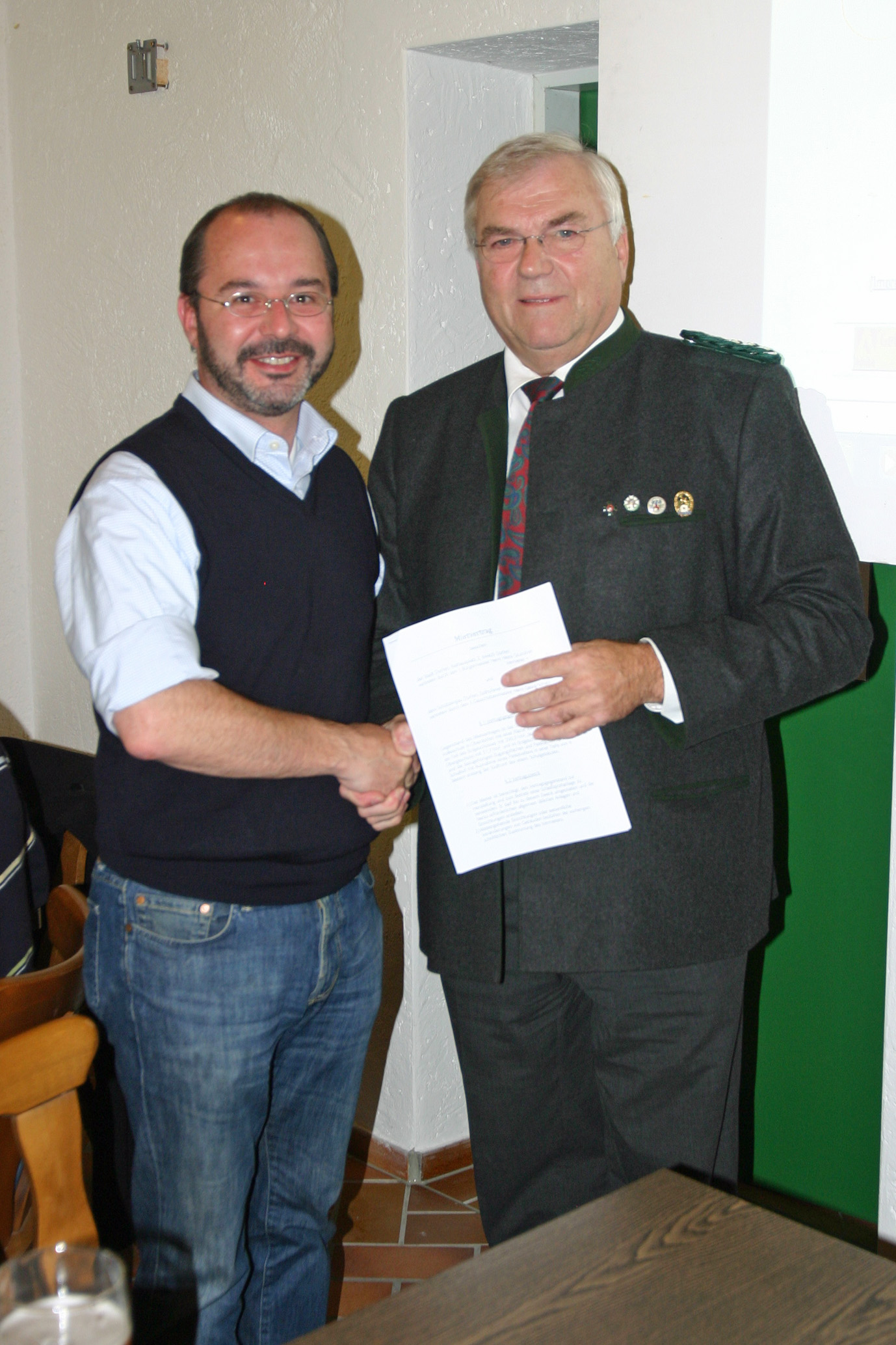 Bürgermeister Heinz Grundner und Gauschützenmeister Georg Schatz (v.l.) verlängerten denn Pachtvertrag für die Nutzung der Gauschießstätte.